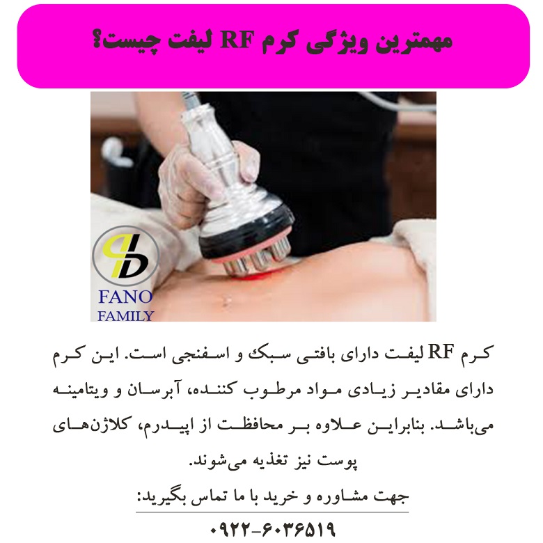 مجموعه فانو تنها عرضه کننده کرمهای RF لیفت بدون مواد نگهداره در ایران است. کرم RF لیفت را با بهترین کیفیت و به قیمت عمده تهیه کنید.